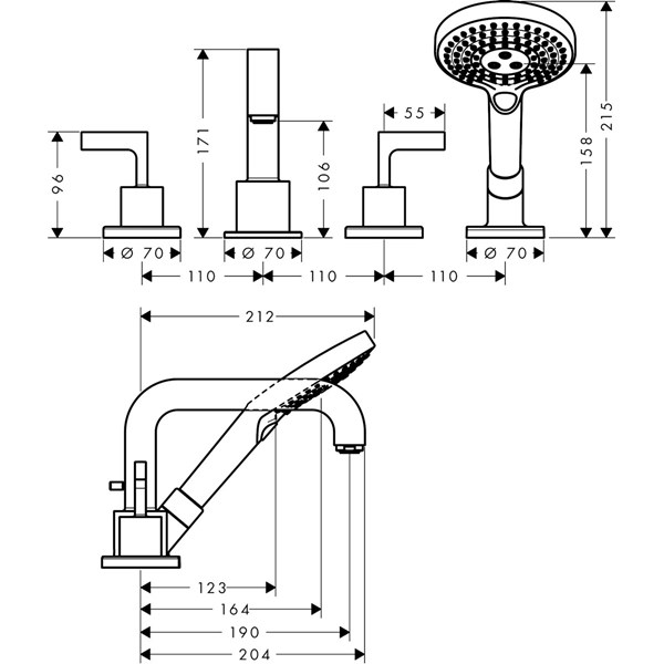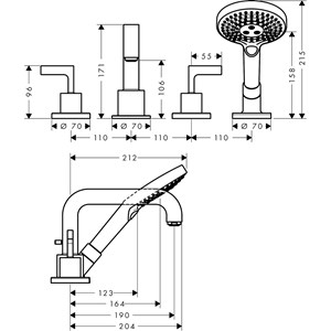 • består av: 4-håls badkarsblandare för karkant, handdusch, duschslang, duschhållare