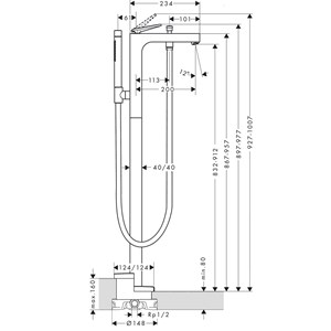 • består av: 1-grepps badkarsblandare för golvmontering, pinnhanddusch, duschhållare, duschslang