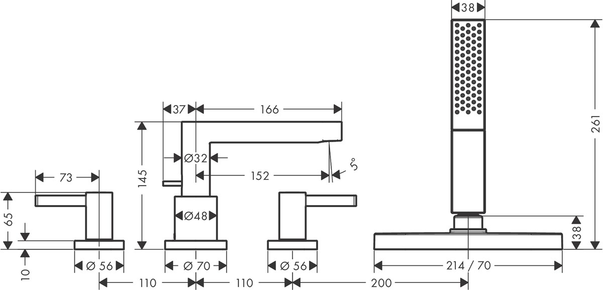 • består av: 4-håls badkarsblandare för karkant, handdusch, duschhållare, slanglåda