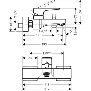 | Produkttyp | Badkarsblandare Väggmonterad |