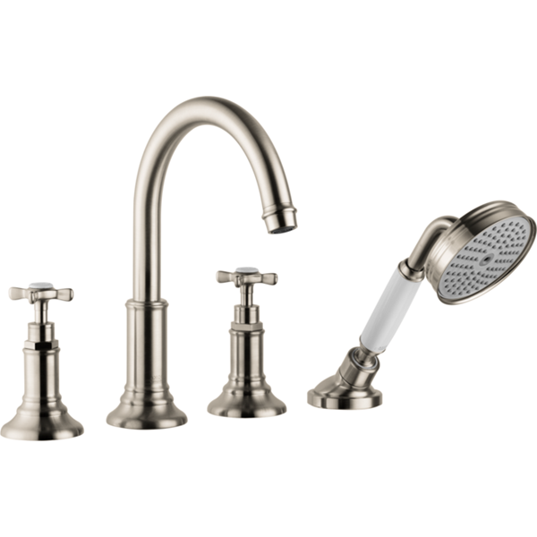 Montreux 4-håls badkarsblandare montering i kant Borstad nickel
