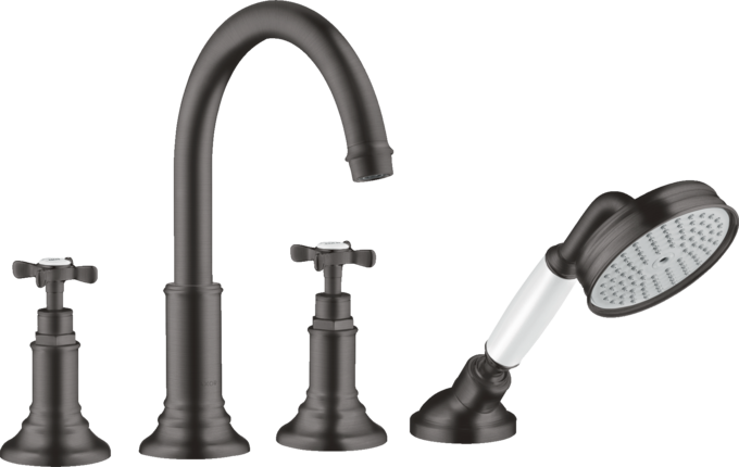 Montreux 4-håls badkarsblandare montering i kant Borstad Svartkrom