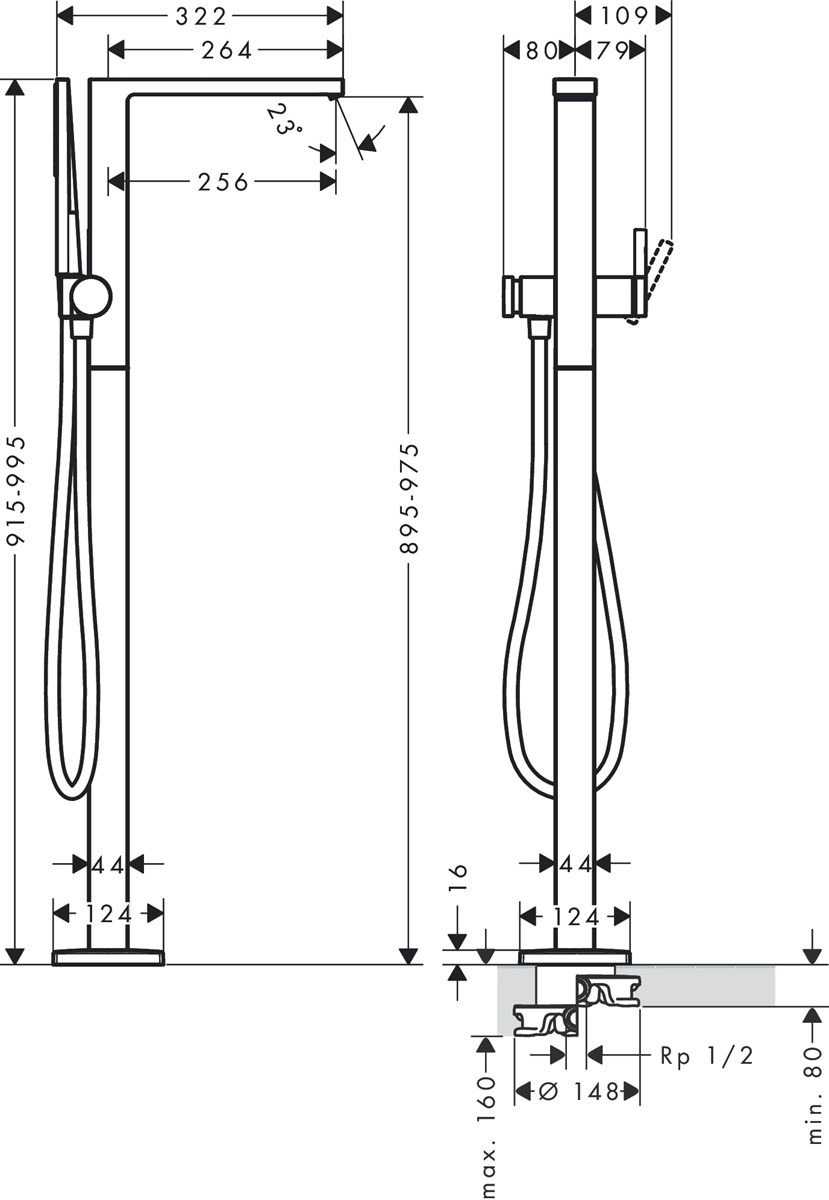 | Produkttyp | Badkarsblandare Golvmonterad |