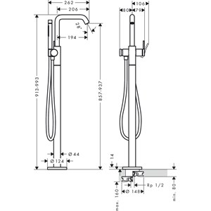 | Produkttyp | Badkarsblandare Golvmonterad |