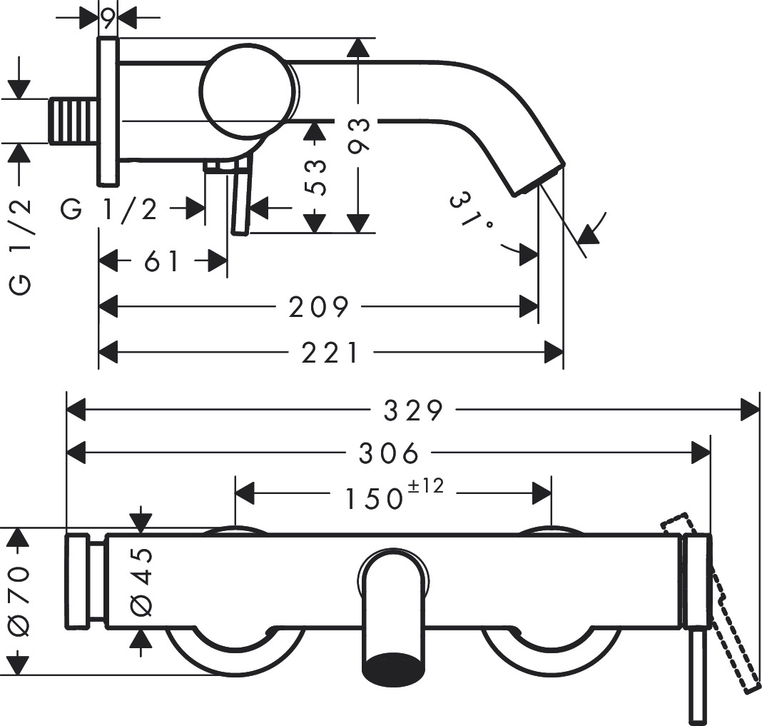 | Produkttyp | Badkarsblandare Väggmonterad |