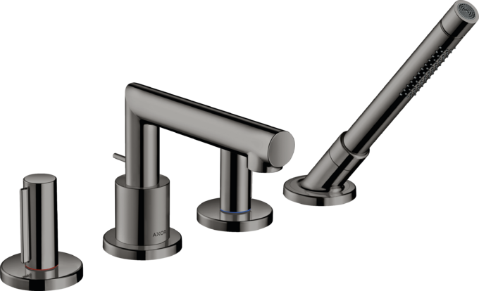 Uno 4-håls badkarsblandare med zero-grepp montering i karkant Polerad Svartkrom