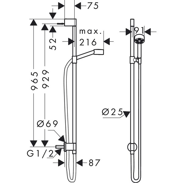 • består av: handdusch, duschstång, duschslang, glidfäste