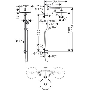 • duschhuvudsstorlek huvuddusch: 280 mm