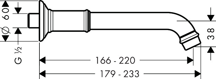 Montreux Utloppspip 166-220mm till kar Rostfri finish