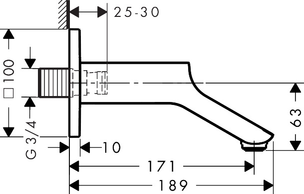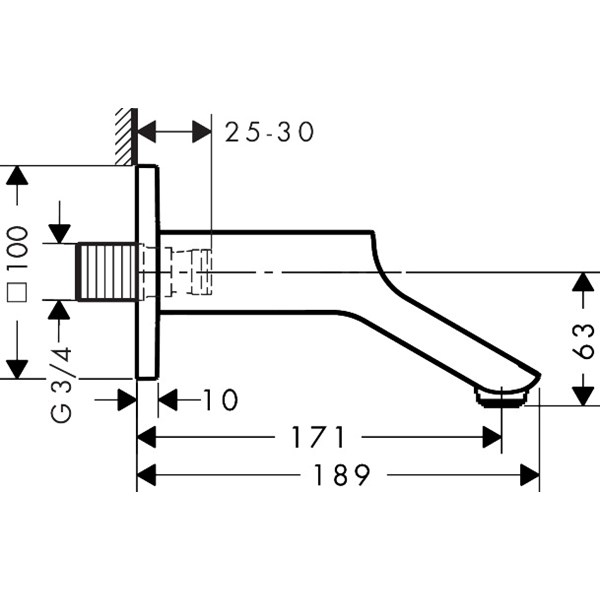 Urquiola Utloppspip 171mm till kar Krom