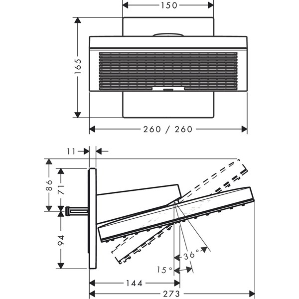 • Fast Drain tömmer huvudduschen från en vinkel på 10°