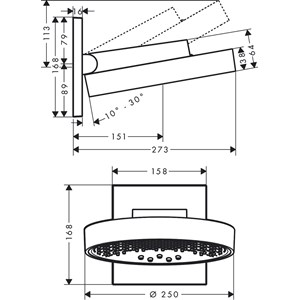 • duschhuvud kan justeras lodrät i vinkel med 10-30°