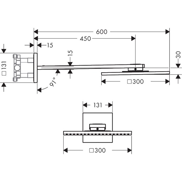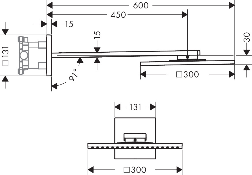 • duschhuvud storlek: 300 x 300 mm