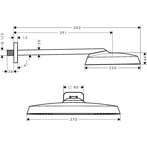 • duschhuvud storlek: 370 x 220 mm
