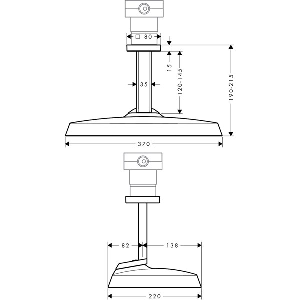 ShowerSphere Huvuddusch 370/220 2jet EcoSmart takmontage Borstad nickel