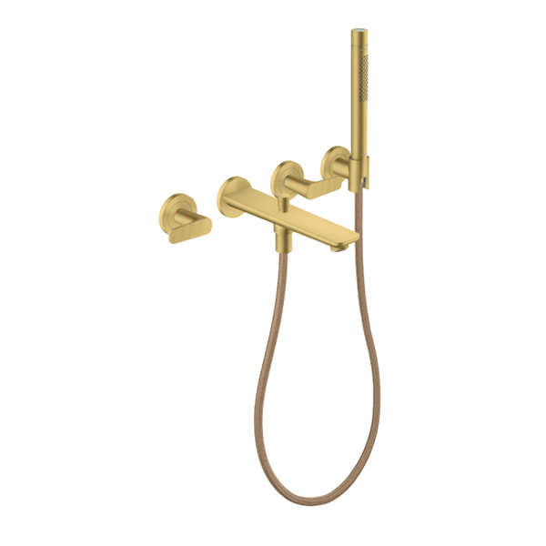 Citterio C 3-håls karblandare färdigset för väggmontage med handdusch - cubic cu Borstad Mässing