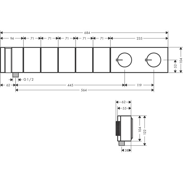 • termostat levereras med knapparna Rain large, handdusch, MonoRain, PowderRain small och PowderRain large