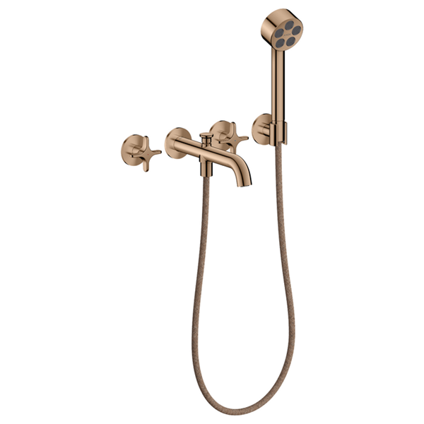 One 3-håls karblandare för inbyggnad vägg med krysshandtag och handdusch Polerad Rödguld