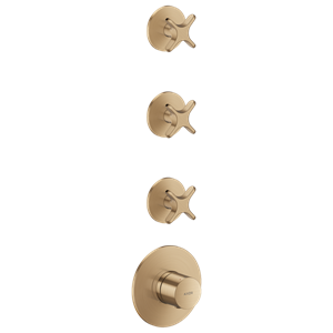 One Termostatmodul inbyggnad med 3 funktioner och krysshandtag Borstad Brons