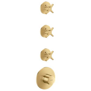 One Termostatmodul inbyggnad med 3 funktioner och krysshandtag Borstad Guld