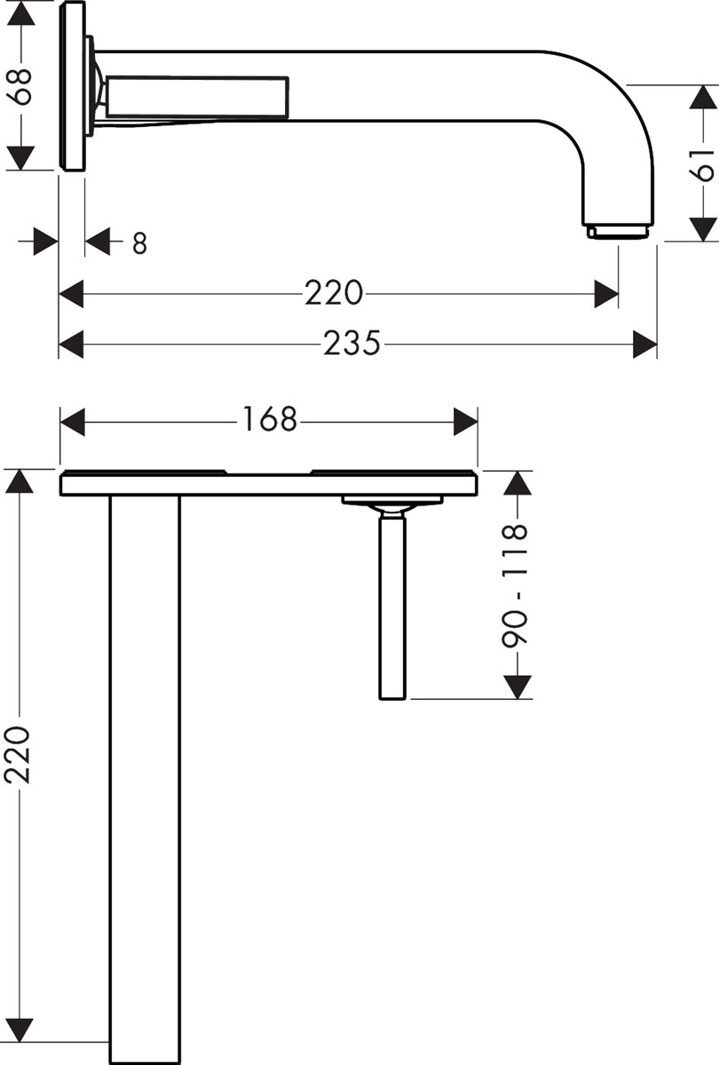 • består av: 1-grepps tvättställsblandare för inbyggnad i vägg, bottenventil