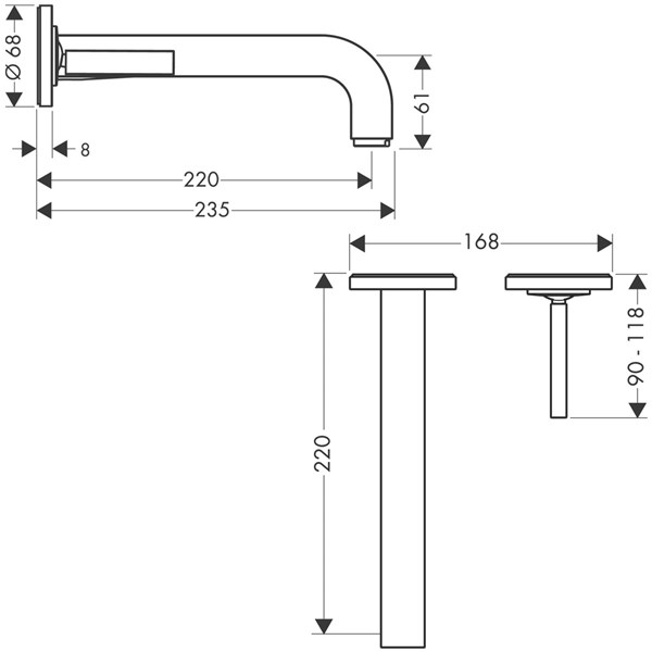 Citterio tvättställsblandare 220mm inbyggnad vägg Polerad Svartkrom