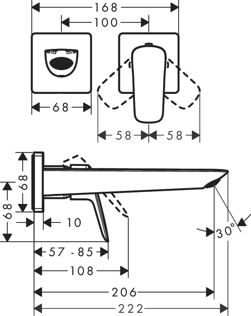 Inbyggnadsdel tvättställsblandare 2-håls inbyggnad vägg