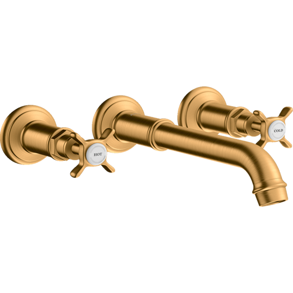Montreux 3-håls tvättställsblandare inbyggnad vägg Borstad guldfinish