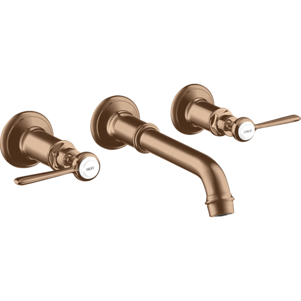 Montreux 3-håls tvättställsblandare inbyggnad vägg Borstad rödguld