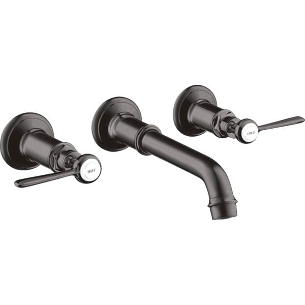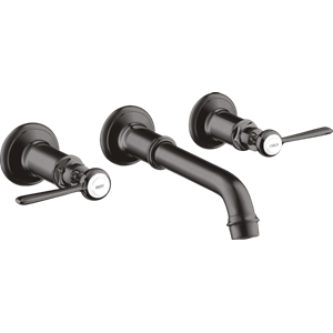 Montreux 3-håls tvättställsblandare inbyggnad vägg Borstad Svartkrom