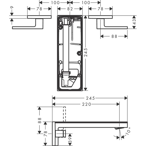 • består av: 3-håls tvättställsblandare för inbyggnad i vägg, bottenventil