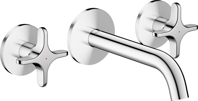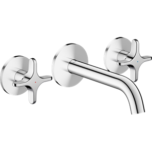One 3-håls tvättställsblandare för inbyggnad vägg med 160 mm pip och krysshandta
