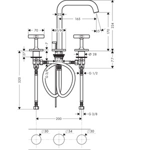 • består av: 3-håls tvättställsblandare, bottenventil