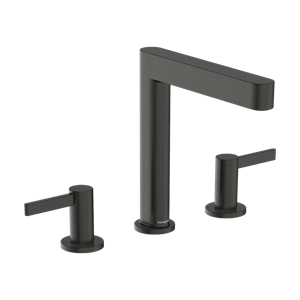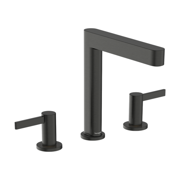 Finoris 3-håls tvättställsblandare 160 med push-open ventil Borstad Svartkrom
