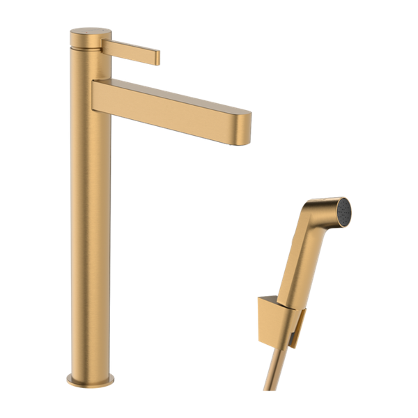 Finoris tvättställsblandare 260 med bidettehanddusch och 160 cm duschslang Borstad brons