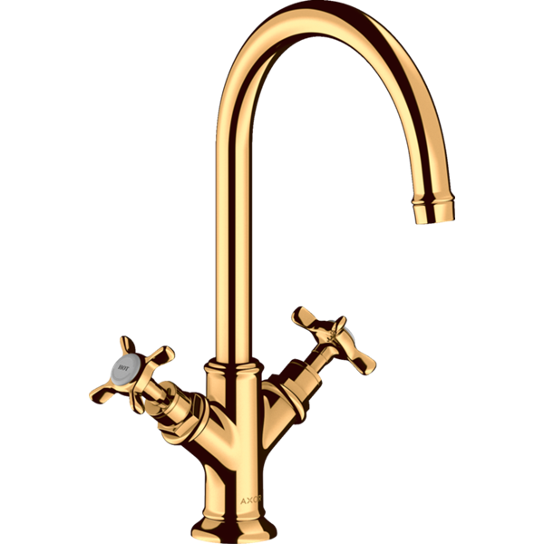 Montreux 2-grepps tvättställsblandare 210 med svängbar pip, utan lyftventil Polerad guldfinish
