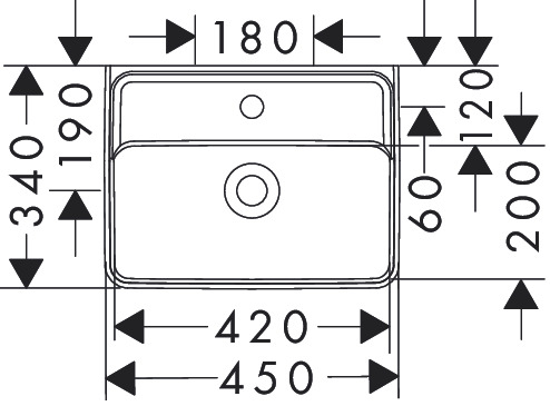 Xanuia Q Handfat 450/340 med blandarhål utan bräddavlopp Vit