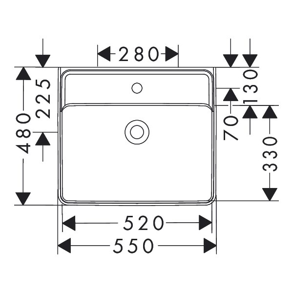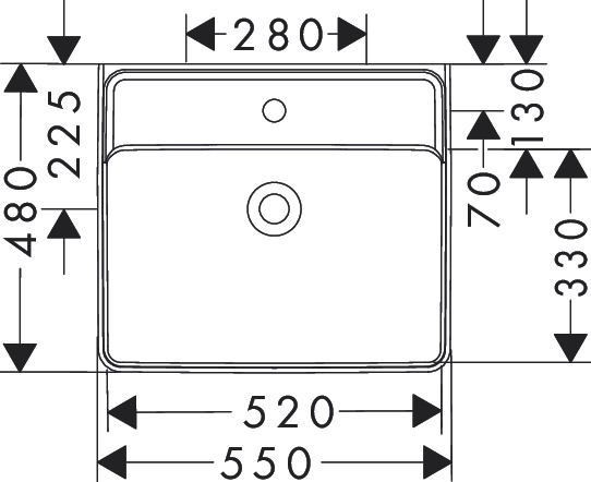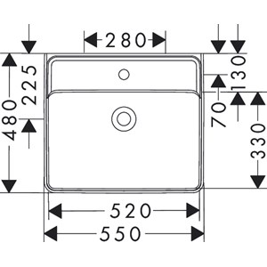 Xanuia Q Tvättställ 550/480 med blandarhål utan bräddavlopp Vit