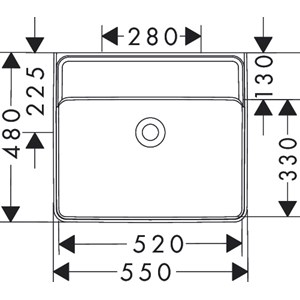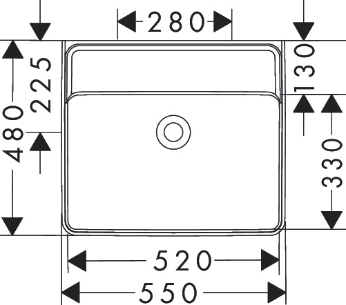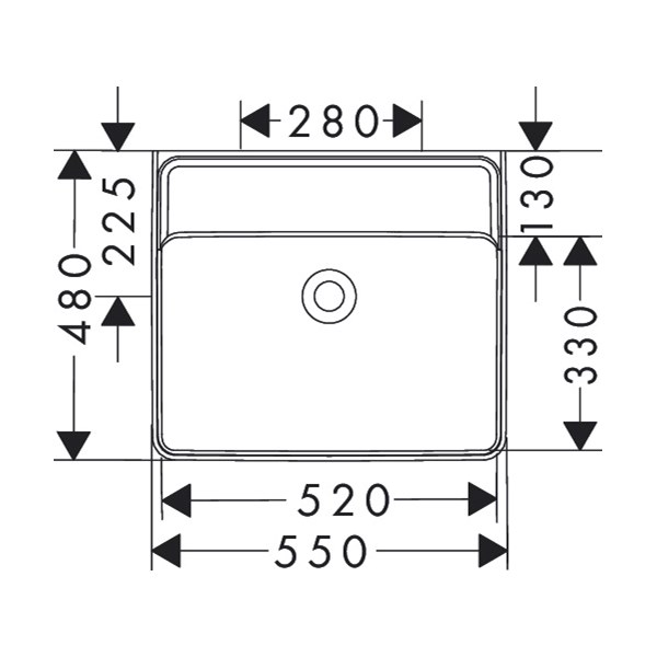 Xanuia Q Tvättställ 550/480 utan blandarhål och bräddavlopp Vit