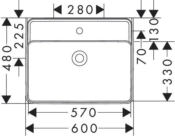 Xanuia Q Tvättställ 600/480 med blandarhål utan bräddavlopp, SmartClean Vit