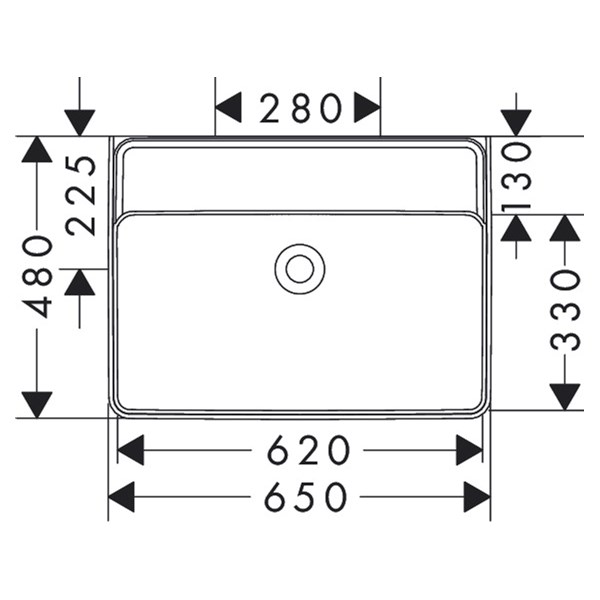 Xanuia Q Tvättställ 650/480 utan blandarhål och bräddavlopp Vit