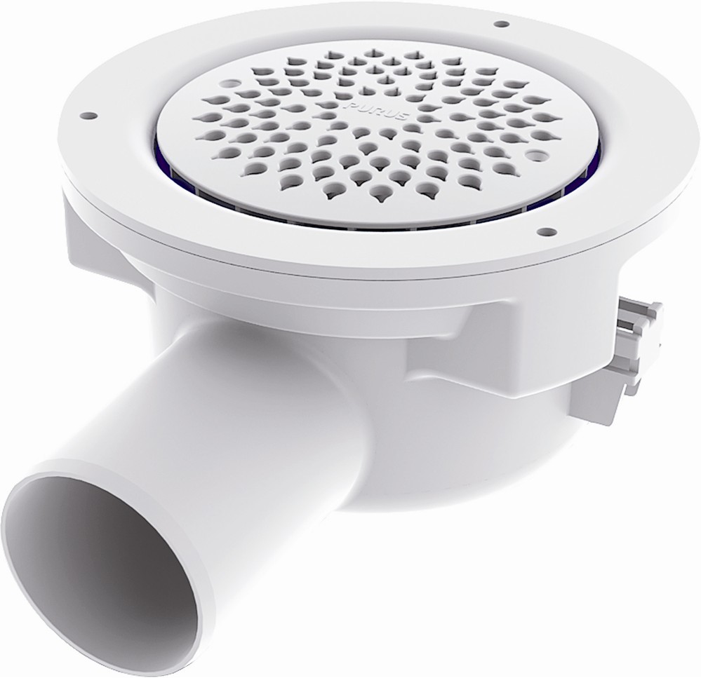 Golvbrunn avsedd för ingjutning. Passar ej monteringsplatta för träbjälklag. Ställbar höjd +15 mm. Tiltbar 4º.