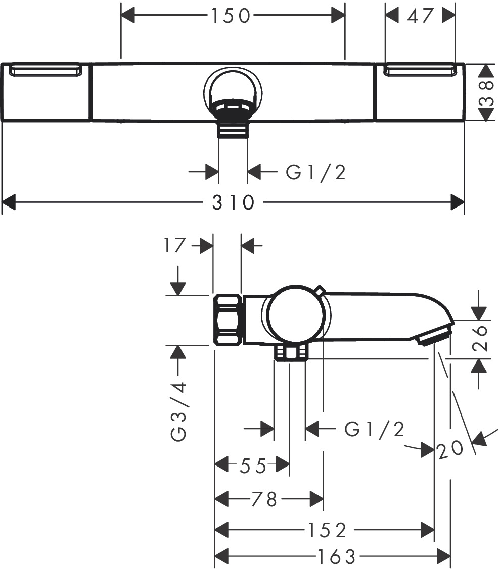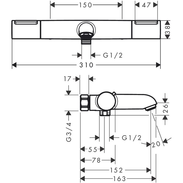 • flödesmängd för badkarspip vid 3 bar: 17 l/min