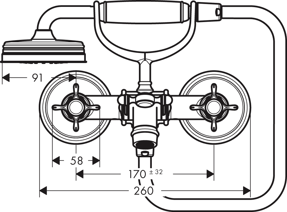 • består av: 2-grepps badkarsblandare, handdusch, duschhållare, duschslang