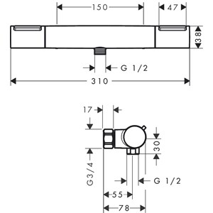 Ecostat Element Duschtermostat 150cc utan väggkåpor Krom