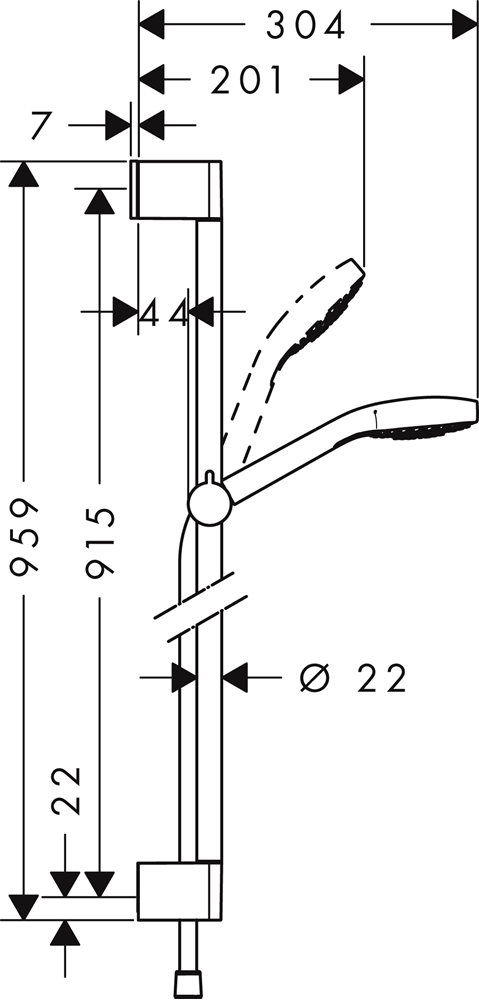 • duschstång diamter: 22 mm