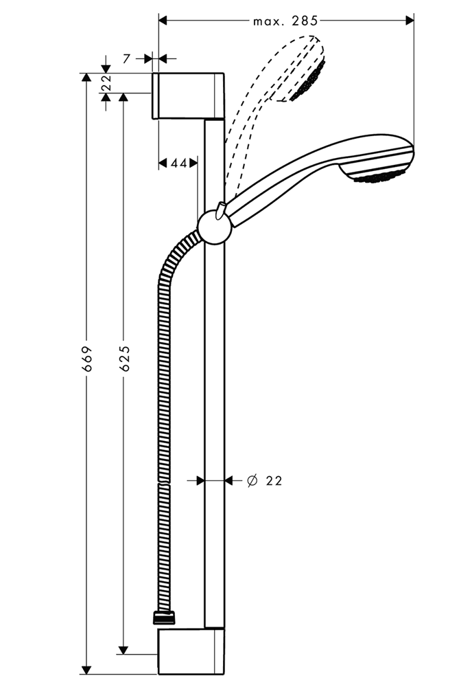 • duschstång diamter: 22 mm