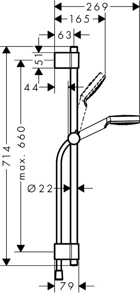 • består av: handdusch, duschstång, duschslang, glidfäste