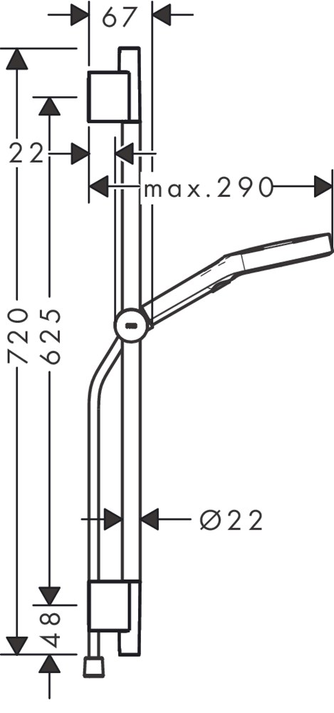 • består av: handdusch, duschslang, glidfäste, duschstång