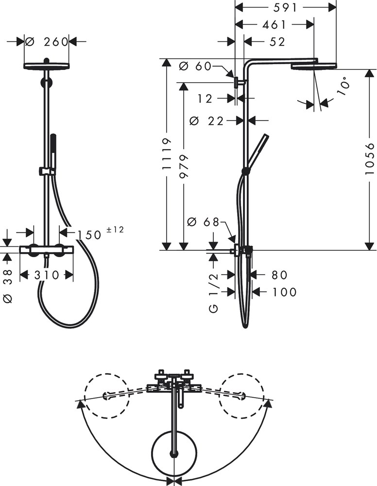 • duschhuvudsstorlek huvuddusch: 260 mm